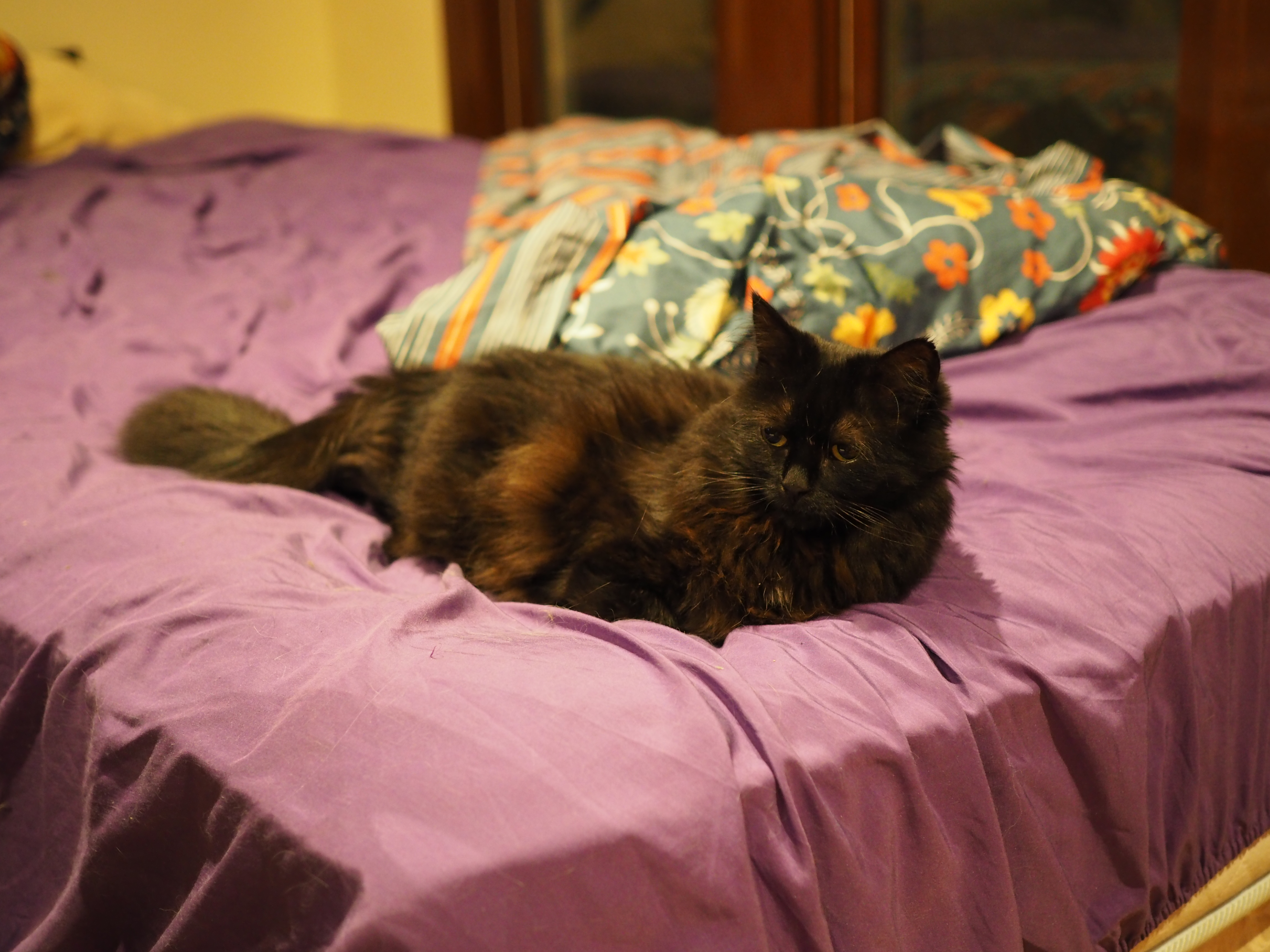 I used to store the spare mattress vertically above my bed. She would sleep on top of it, and every morning she would bungee jump down onto me.